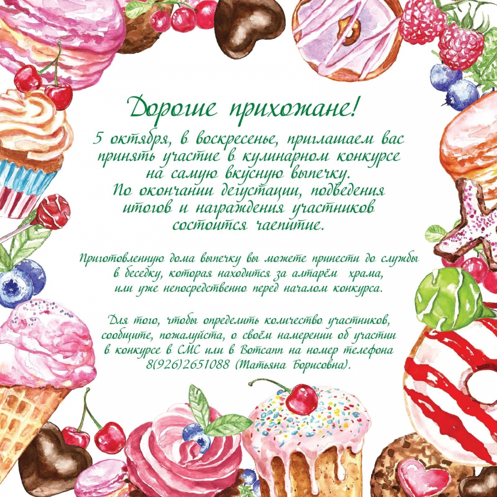 храм Живоначальной Троицы в Воронцове г. Москва - Приглашаем принять участие в кулинарном конкурсе