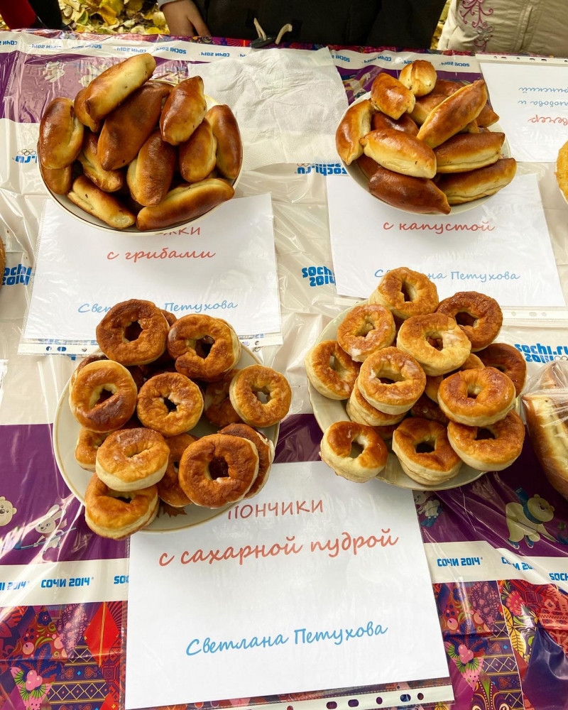 3. Светлана Петухова - пирожки с капустой, с грибами и пончики с сахарной пудрой.