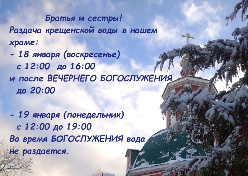 храм Живоначальной Троицы в Воронцове г. Москва - РАЗДАЧА КРЕЩЕНСКОЙ ВОДЫ